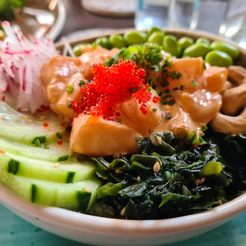 Un format di successo cominciato proprio durante la pandemia, che oggi conta ben dieci locali, tre a Milano, l’ultimo aperto in Corso di Porta Vittoria n. 42. Noi abbiamo visitato quello del quartiere Isola, in via Pollaiuolo n. 9, il più grande, che può ospitare un centinaio di persone tra l’interno e il dehors. Il menù propone varie suggestioni adatte a tutte le occasioni, dal pranzo di lavoro, all’aperitivo, sino alla cena. Ben riuscita l’idea delle tapas, da provare con gli amici con un calice di birra Hawaiana, come il Salmon Spam a base di paté di salmone e mirtilli, servito con sfoglie di pane azimo; il Salmon Balls, polpettine di salmone con salsa teriayaki o gli Avocado Rool, a base di crema di avocado in tempura e salsa al tamarindo e lime.