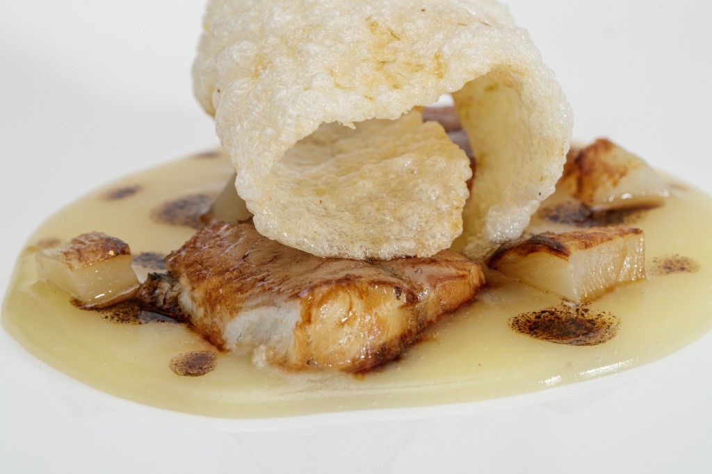 Tra i piatti da “tuffo al cuore”, vincono le “Capesante scottate con uno zabaglione salato allo zaffereno, con tartufo nero e guanciale croccante”, che colpiscono per profondità gustativa e un impatto da montagne russe in bocca, grazie al gioco tra speziatura, consistenze, aromi, e sapidità. Assolutamente da provare.