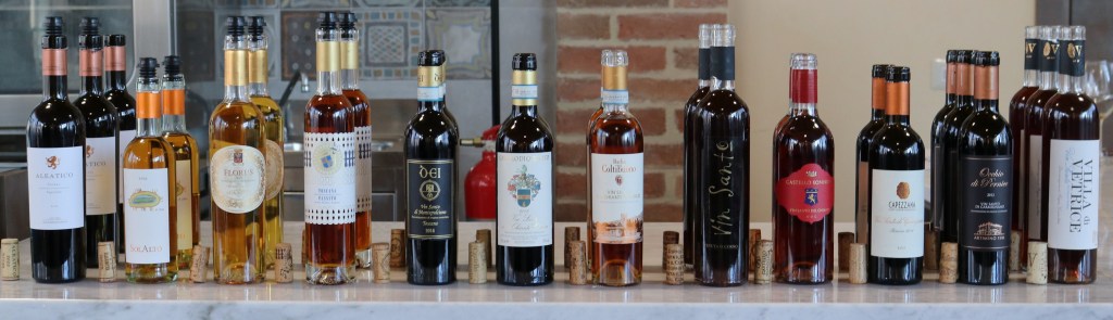 Nel panorama dei vini dolci si possono trovare accanto al Vin Santo toscano, il Vin Santo trentino, muffati, Eiswein, Recioto, Vespaiola, Torcolato, Picolit, Ramandolo, Moscato, Aleatico, Erbaluce, Zibibbo.
