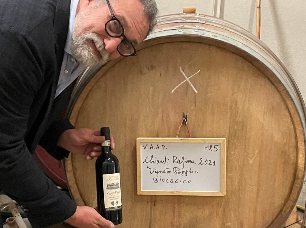 Si comincia con il Chianti Rùfina DOCG Riserva Vigneto Poggio 2018, un vino potente e ricco, che si esprime su una linea sensoriale vicina alla frutta matura e alle spezie, materico in bocca, avvolgente e molto persistente. Decisamente di altro timbro il Chianti Rùfina DOCG Riserva Vigneto Poggio 2019, che vanta una maturazione ottimale del Sangiovese di cui esprime massimamente i caratteri. Una 2019 che segna un passaggio stilistico in cantina e che si percepisce subito, grazie alla finezza olfattiva, ai sentori di frutta più chiara, ricordi floreali, note speziate e di tabacco. Il sorso è molto fine ed equilibrato, con tannini ben dosati e una freschezza che gli dà slancio e persistenza. La 2020 del Chianti Rùfina DOCG Riserva Vigneto Poggio è una cavalcata sullo stile della 2019, da cui si discosta per dei ricordi olfattivi più speziati e una bocca succosa e tridimensionale, pur conservando, slancio e freschezza. L’ultima annata in commercio, il Chianti Rùfina DOCG Riserva Vigneto Poggio 2021 ha delle belle premesse di serbevolezza e finezza, articolato nei profumi tra sentori fruttati, floreali e di spezie. In bocca ha tempra e corpo con tannini ben dosati, sostenuti da una buona acidità con un finale lungo, saporito e piacevole.