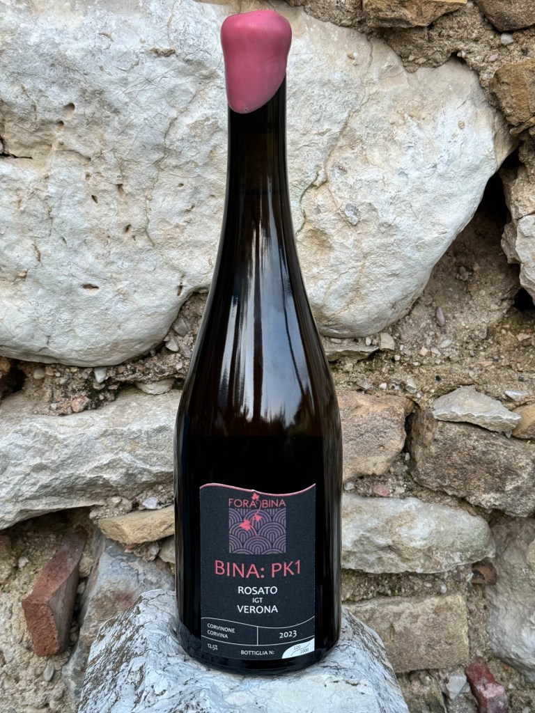 Il Bina PK1: Rosato IGT Verona 2023 offre una rivisitazione del tradizionale Chiaretto di Bardolino, utilizzando Corvinone come varietà principale. Le uve, raccolte da un vigneto terrazzato ai piedi del Monte Baldo, vengono vinificate per lotti separati e affinano sulle fecce fini per quattro mesi. Il risultato è un rosato dal colore delicato con sfumature di buccia di cipolla, con note aromatiche di pesca, frutti rossi e arancia rossa. Ideale come aperitivo o abbinato a piatti estivi e pesce di lago, ma sorprendente con pizza con bufala, crudo e rucola.