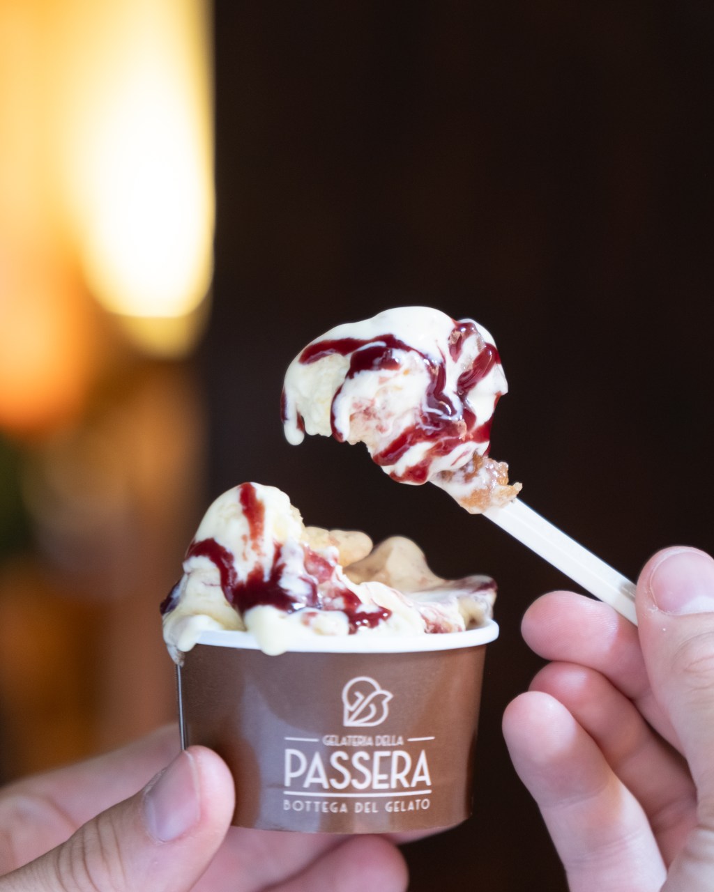 Nella vetrina della gelateria è appena comparso il nuovo gusto dedicato all’Elettrice Palatina, al secolo Anna Maria Luisa de’ Medici, ultima discendente della dinastia granducale e protagonista della celebre “donazione” che permise di mantenere a Firenze l’immenso patrimonio artistico della famiglia Medici.