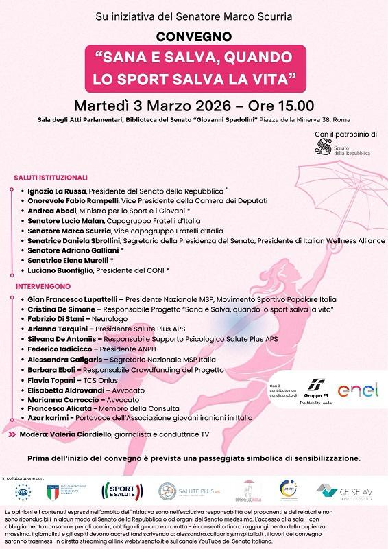 3 marzo, Roma: Sana e Salva – Quando lo Sport salva la vita